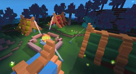 第五步,小伙伴们无法出门 ,就捕捉萤火虫 ,用木板楼梯给帐篷做加固围边。